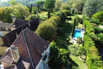 * The huge garden comprises grassed areas, ideal for ball games, and hundred year old trees. From the end of the garden the panoramic view over the Dordogne valley below is quite simply spectacular. You can watch the hot air ballons rise above the mist in the early morning, or the sun go down in the evening.