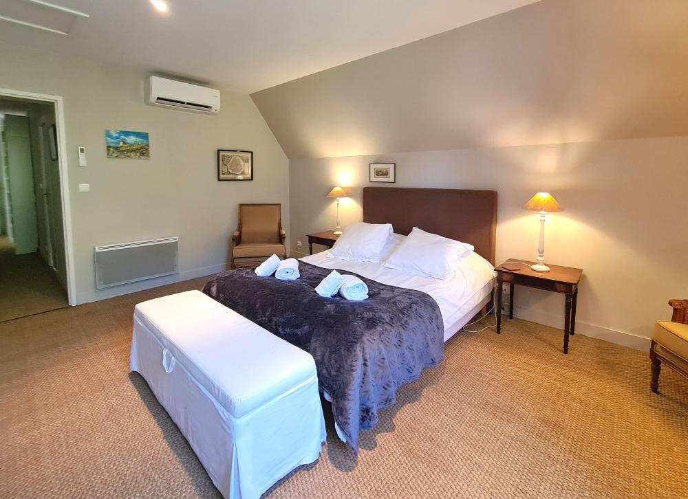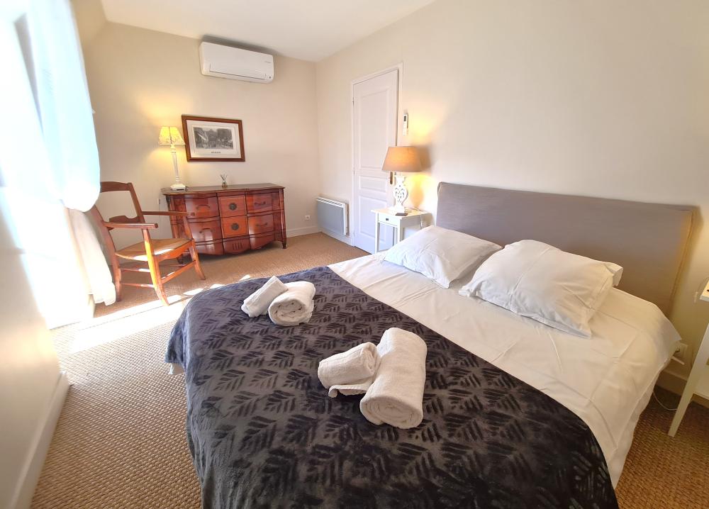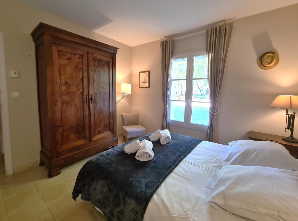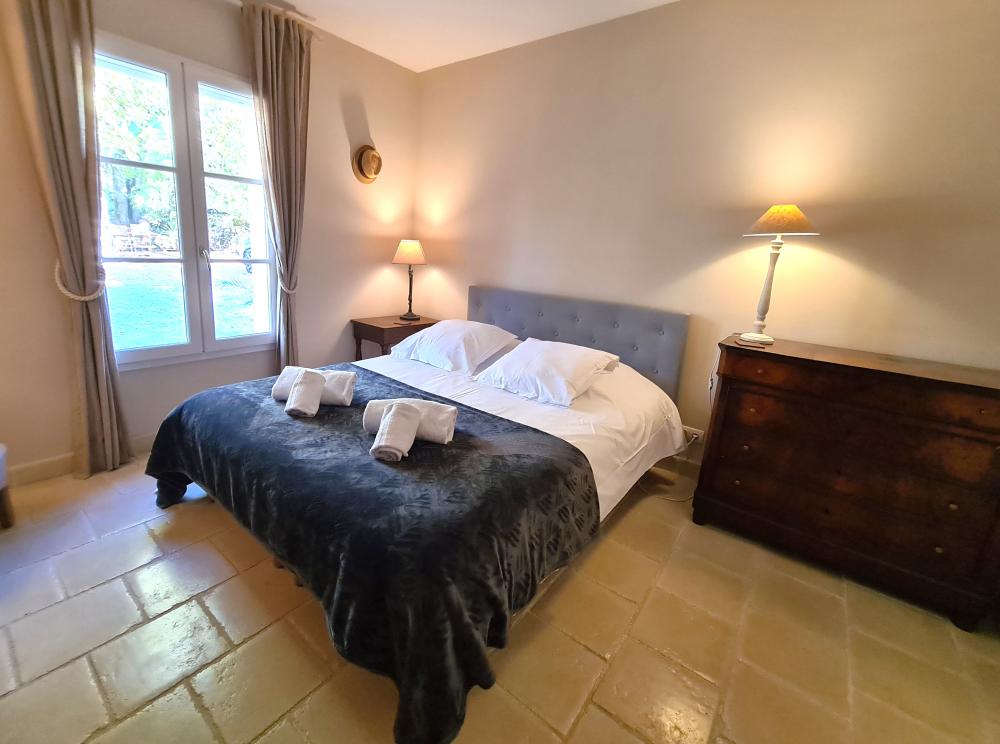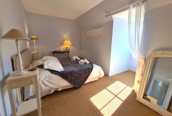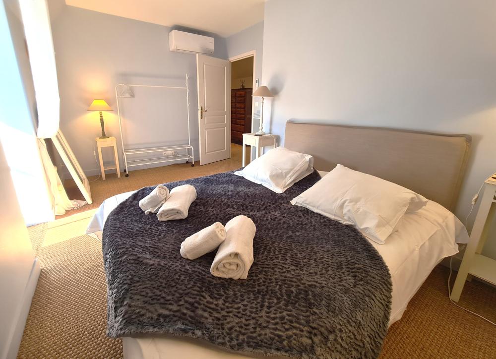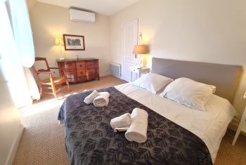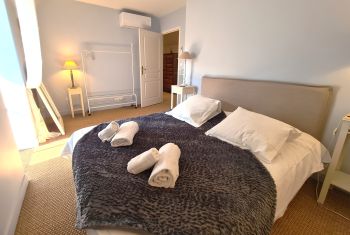 * three double bedrooms, each one equipped with a large double bed (160cm wide), bedside tables, lamps and chest of drawers.