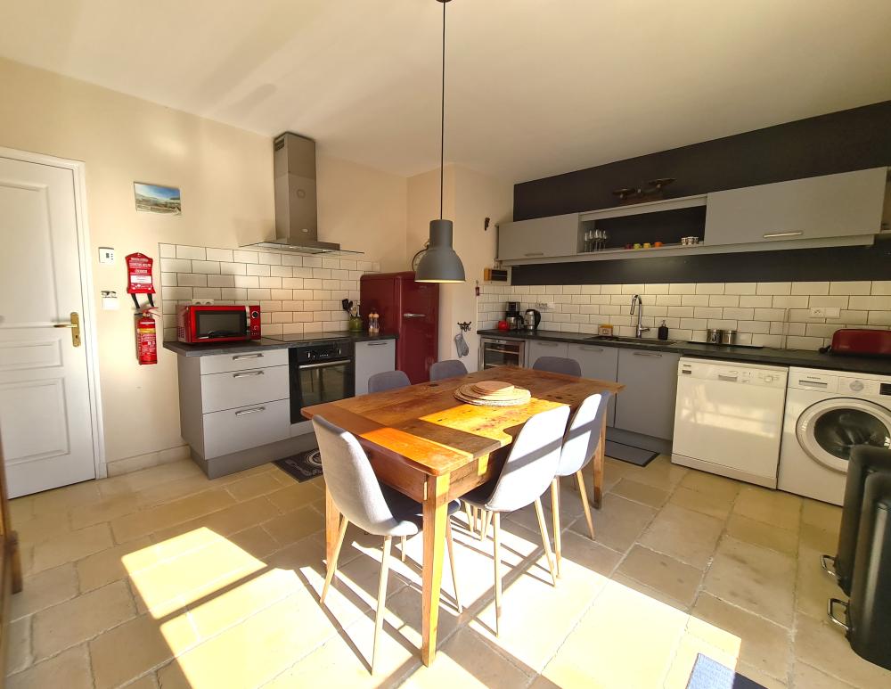 * an fully fitted kitchen with a table and chairs ideal for breakfast. The kitchen is equipped with oven, electric hob, dishwasher, coffee machine, toaster, kettle and all the necessary crockery and utensils for preparing tasty homecooked meals.