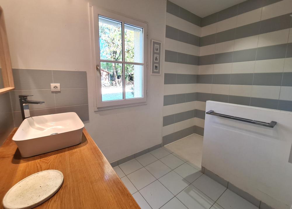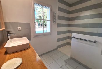 * The private, salt water pool, measuring 8m x 4m, is secured by an immerged alarm for the children's safety. It has sun loungers and parasols.