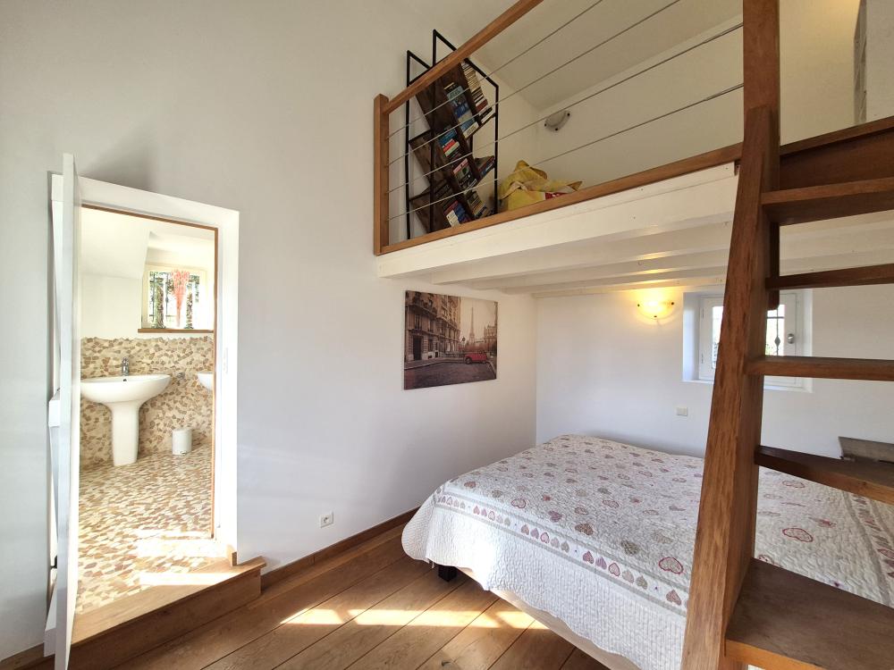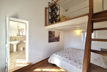 * a first bedroom with a double bed on the mezzanine level.