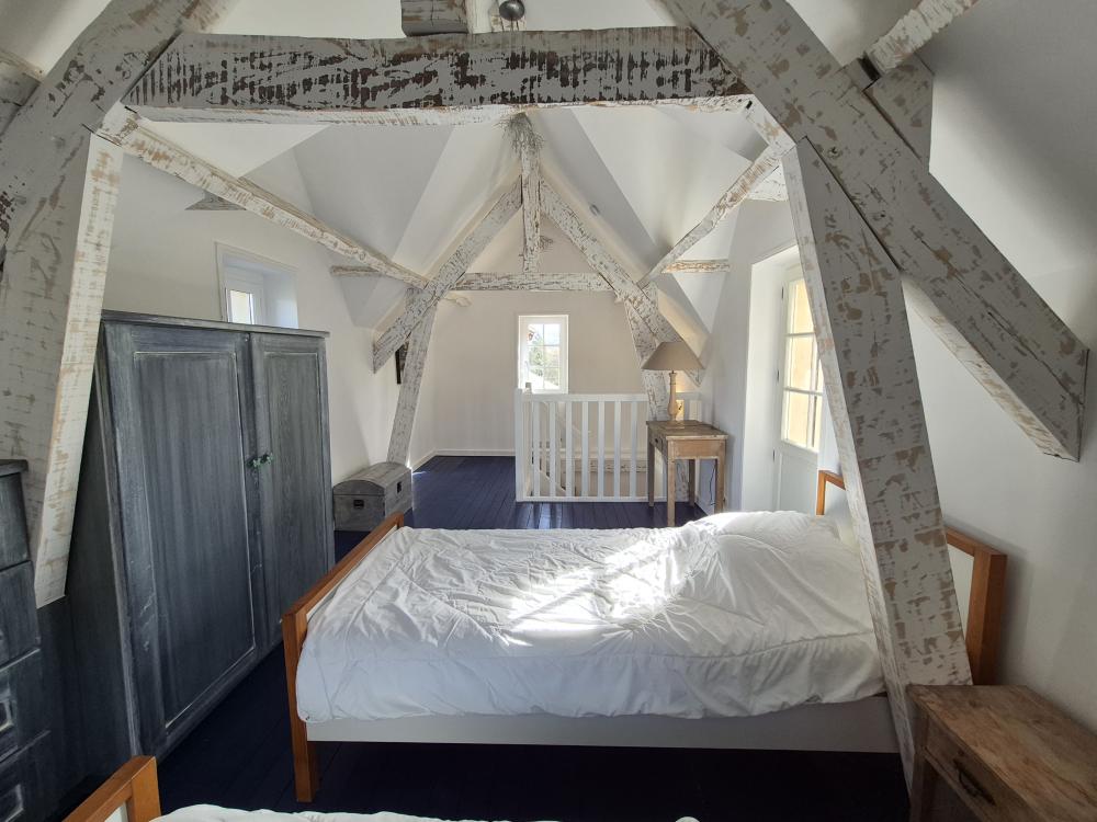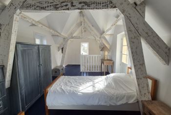 * a spacious double bedroom with king size bed, bedside tables and lamps and a single bed ideal for a child wishing to sleep near his/her parents. (please note that the ceiling height is limited)