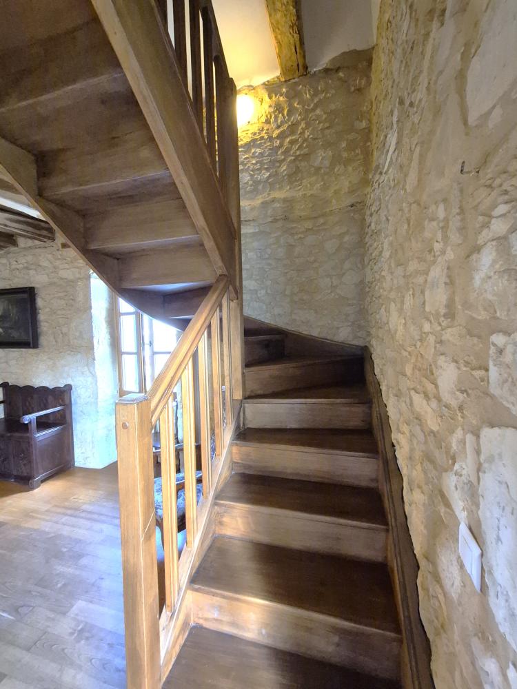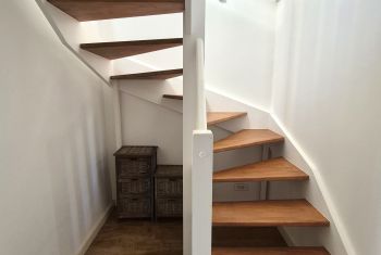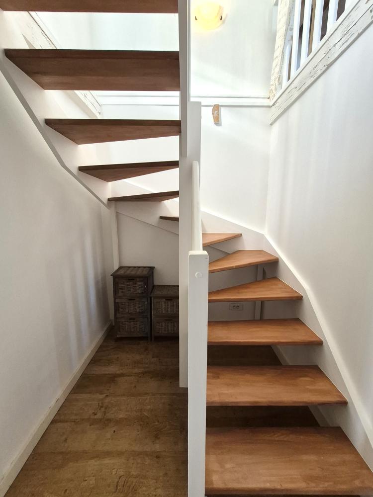 A wooden staircase leads up to the first floor: