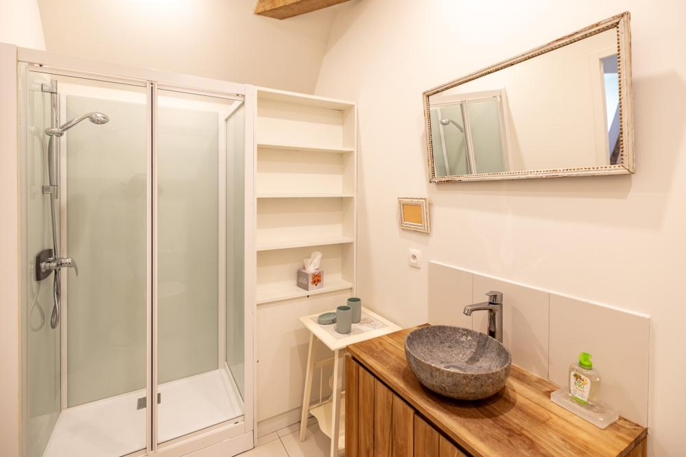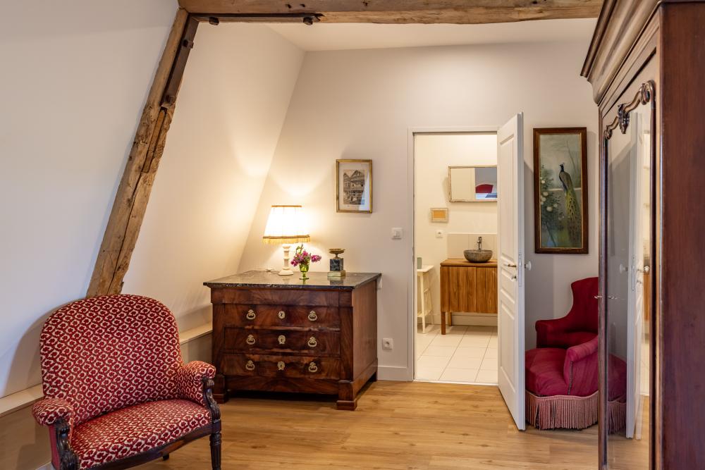 * The bedroom "Cour"(15m²) with a very large 180×200, (can be made as a twin bedroom), shower room and toilet.