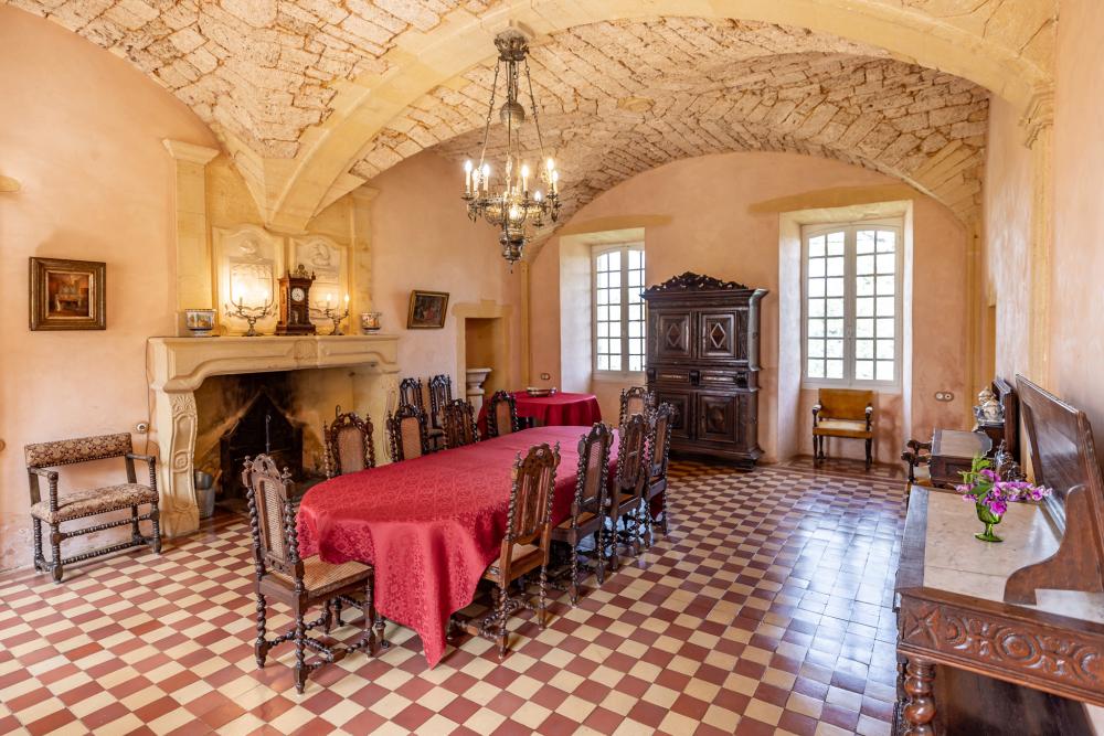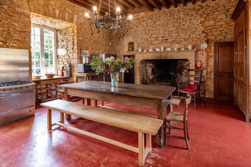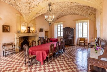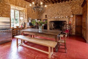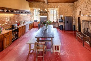 A large hall, paved with 17th-century terracotta tiles, serves all the vaulted rooms on the ground floor. The vast kitchen (42sqm, with beautiful stone fireplace, back kitchen, professional cooker), is perfectly suited to cooking for large families by either the housewife or a Chef.