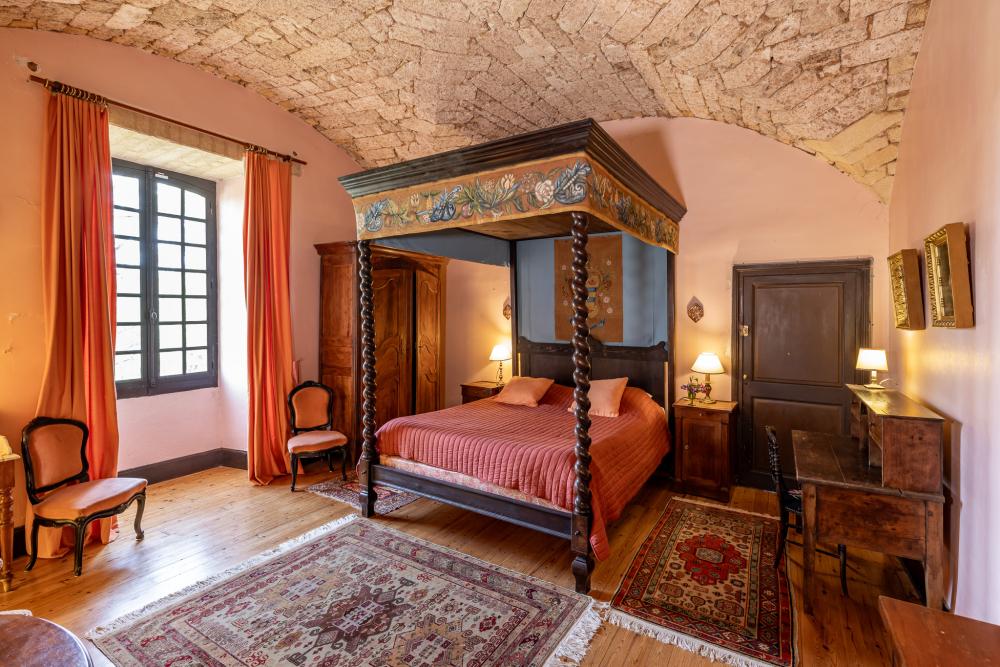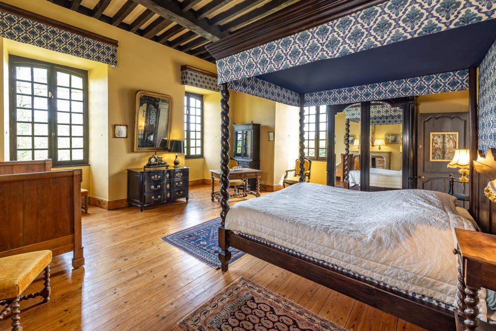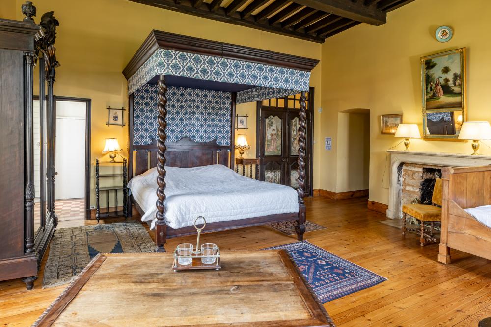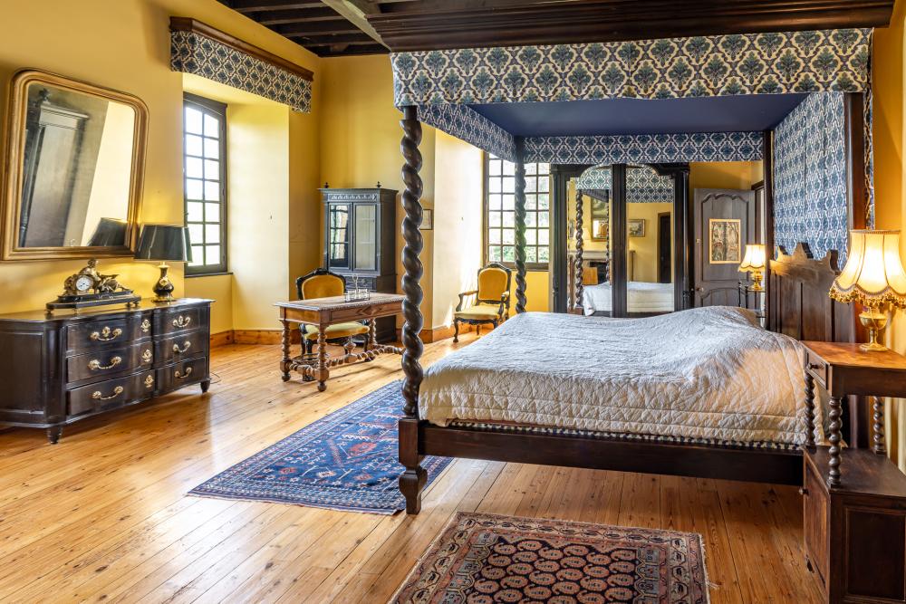 * Louis XIV bedroom (32m²) with its four-poster bed (180×200), en-suite bathroom with toilet