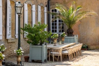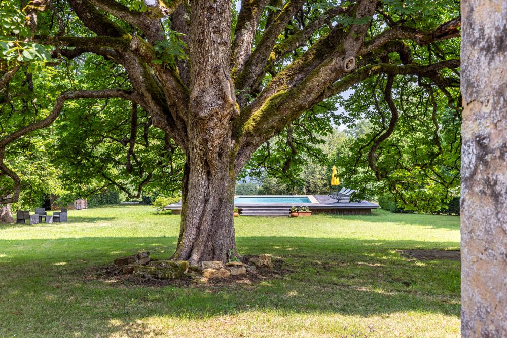 The current park was planted in 1896 by Lord Greenwell and his wife Emma Maire, great-grandparents of the current owner. Eight magnificent cedars open a beautiful view to the courtyard. A large balustrade crowns the East terrace and its 300-year old climbing vine. Another large terrace planted with amazing trees (including a 300-year old chestnut tree), dominates the valley of the Dordogne. The meadows surrounding La Poujade helps it to retain some rural character.