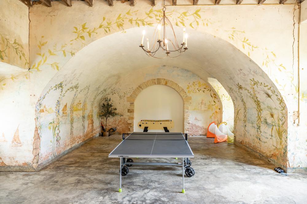 * A game room with TV - DVD leads to the Orangerie with table tennis, and to the old chapel converted into a fitness room.