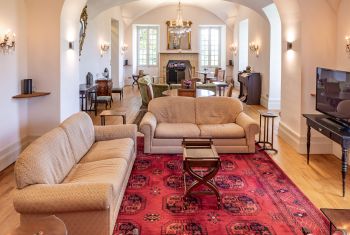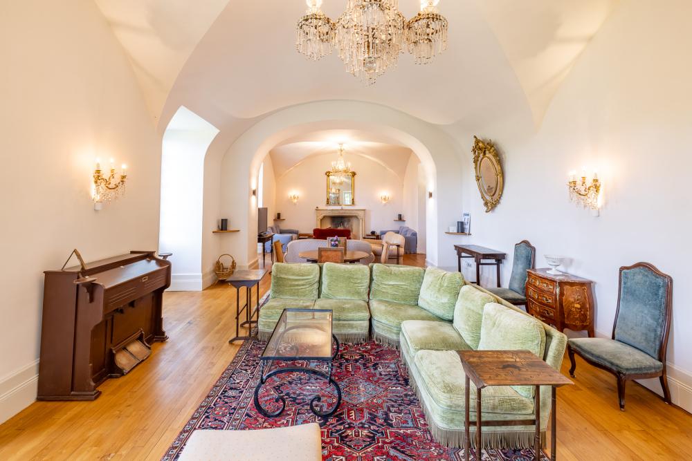The vaulted lounge (70sqm), with its crystal chandeliers, offers a beautiful acoustic for music lovers and musicians. A fully equipped laundry is also available. A plancha is put at your disposal.