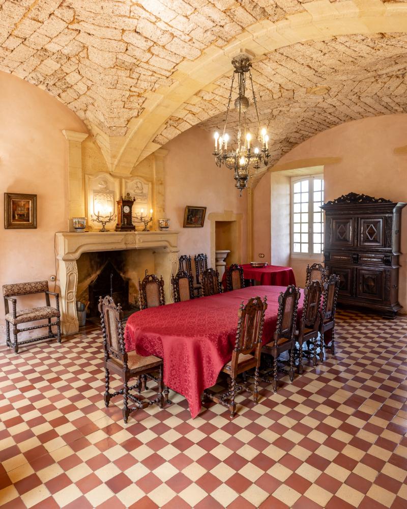 Inside, the Castle retains its character thanks to quite exceptional arches, pilasters, columns, door frames, majestic Louis XIV fireplaces; all these elements create a both intimate and mysterious atmosphere.