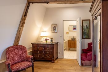 * The bedroom "Rotonde" (15m²) with a very large 180×200, (can be made as a twin bedroom), shower room and toilet.