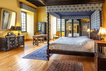 * Greenwell bedroom (30m²) with its four-poster bed (180×200), en-suite bathroom with toilet