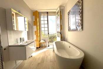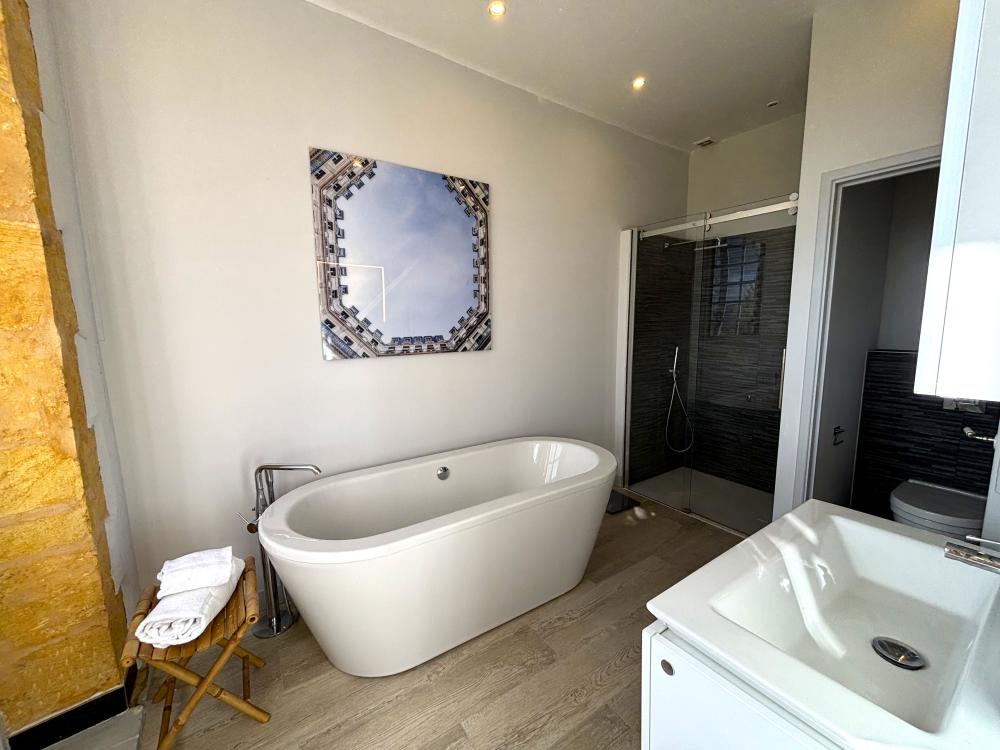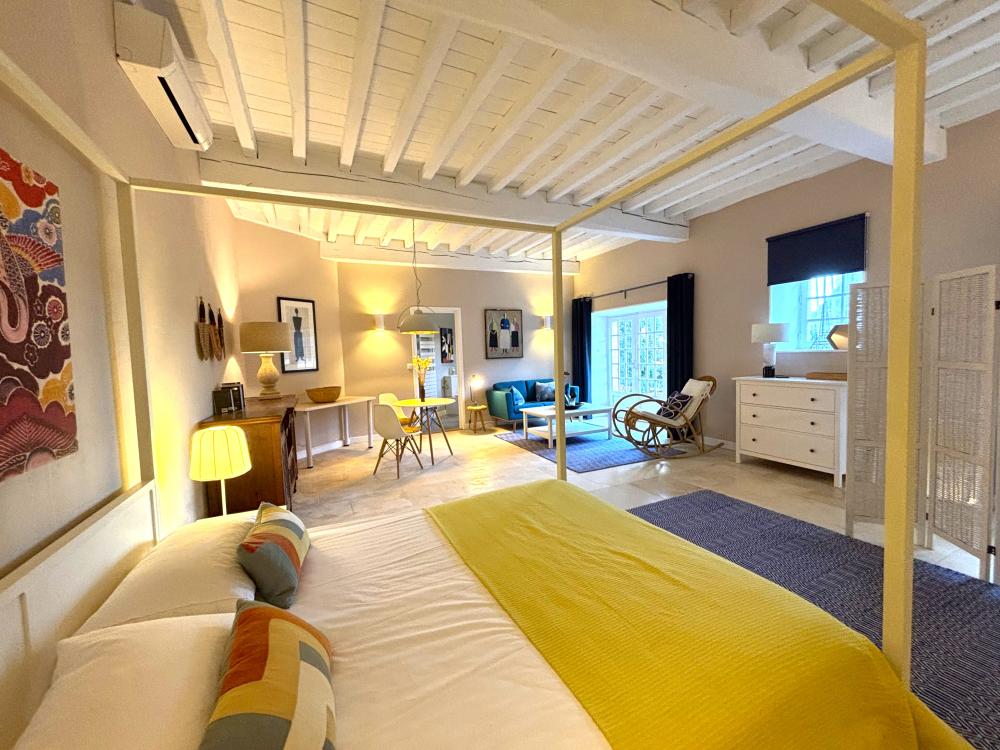 Embrace the character of this 6 bedrooms exquisite stone property whilst making the most of its 21st century features after an extensive renovation. From the living room step out through the french windows and admire the glorious vistas from the long balcony. The sleek kitchen sits proudly by the exposed stone walls and an eclectic mix of antique and modern furnishings in the dining area. Both bedrooms on the main floor lead out to the balcony. There is another lounge upstairs, two further double and a twin bedrooms. Each bedrooms is air-conditioned and they all have an ensuite bath or shower room. A few steps from the Manor House, the guest house offers an independent and equal quality accommodation for two additional guests.