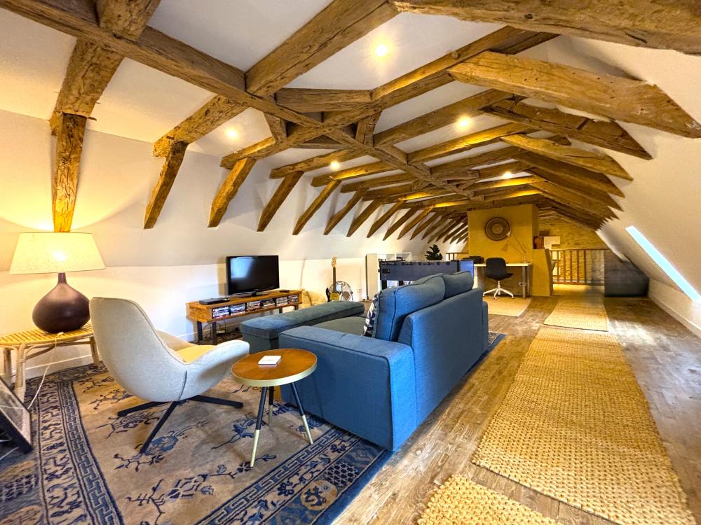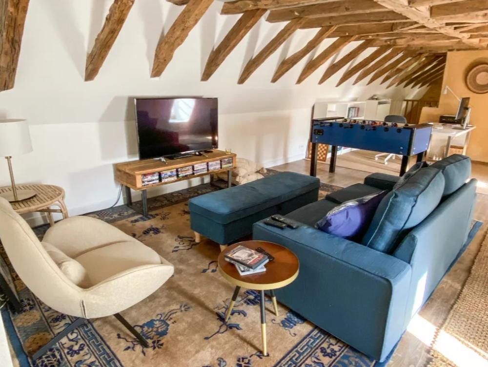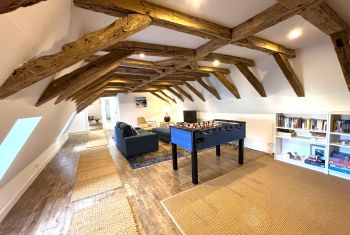 - The large open-plan space, beneath the eaves, is a paradise for children with its table football, games and lounge area with TV and DVDs. The large desk also allows you to work on site.