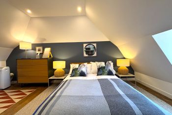 - The fifth bedroom of the Manor House has a large double bed (160cm), bed side tables and lamps, a chest of drawers and a wardrobe.